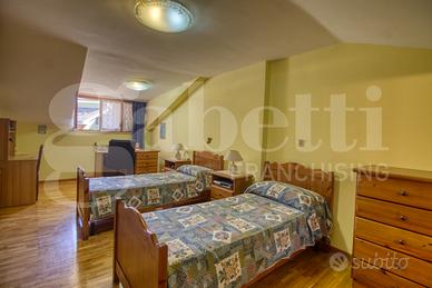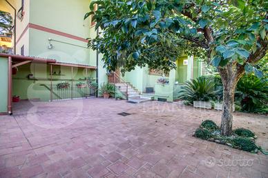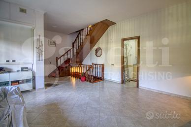 Colleverde, Via Monte Cervino. Porzione di villa quadrifamiliare divisibile per due nuclei familiari. Piano terra composto da salone, cucina abitabile, portico e giardino di circa 150 mq. (in parte pavimentato, con alberi da frutta e tettoia/parcheggio); al piano primo troviamo due comode camere da letto, un bagno e un terrazzo e da una scala a chiocciola si accede direttamente al piano secondo dove ci sono una grande camera da letto, una cameretta, un bagno. Completa la proprietà una sala hobby con camino e cucina a vista e bagno al piano interrato, servita da un secondo accesso esterno.