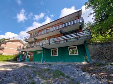 Pizzoli: Immersa nel verde proponiamo casa singola su tre livelli con ampio terreno. L'immobile si presenta da ristrutturare internamente e considerata la sua conformazione e posizione potrebbe essere valutato come casa di riposo o come casa vacanza