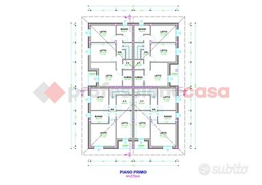 Piano superiore tre camere da letto, disimpegno, bagno e balcone.