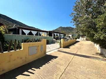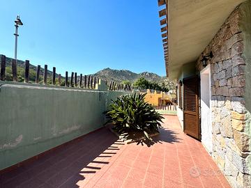 Posteggiata l'auto lungo strada o all'interno dell'area cortilizia privata, tramite qualche gradino si raggiunge un solarium lastricato su cui affaccia la spaziosa veranda coperta dalla quale si può godere di una discreta vista mare; lateralmente all'immobile sono presenti una doccia esterna e un barbecue.