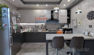 Nel cuore di Aci San Filippo, in una posizione di assoluta centralità e ottimamente servita da una ricca cornice di attività commerciali, si erge questa raffinata villetta a schiera, espressione di un abitare moderno e confortevole distribuita su più livelli e impreziosita da armoniose finiture. La casa è stata oggetto di una accurata ristrutturazione circa 4 anni fa, che ha anche interessato l'impianto idrico a quello elettrico. La proprietà si distingue inoltre per la sua eccellenza energetica, grazie alla presenza di un impianto fotovoltaico, e di un boiler, e per l' elevato livello di comfort termico garantito da un sistema di climatizzazione completo, composto da ben cinque climatizzatori, strategicamente posizionati in tutti gli ambienti. Un comfort essenziale è assicurato dalla presenza di un efficiente impianto di riscaldamento con termosifoni distribuiti in tutta la casa, alimentato da un impianto a metano, garantendo così calore costante durante i mesi più freddi. L' ingresso introduce in un ambiente open-space dove il salone e la cucina si fondono in un unico ampio spazio conviviale. L' atmosfera resa sofisticata dalla presenza di faretti ad incastro, che disegnano punti luce calibrati, esaltando gli spazi e creando un' illuminazione moderna. Questo livello è completato da una pratica dispensa e da un bagno di servizio, un balcone verandato ottimizzando la funzionalità del piano. Una scala conduce al piano primo interamente dedicato alla zona notte. Qui si sviluppano due ampie camere da letto, concepite per garantire massimo comfort e riservatezza. Un elemento di grande pregio è il grande balcone che cinge l'intero perimetro dell' immobile, offrendo accesso esterno da entrambe le camere. Questo spazio si allarga in un terrazzino funzionale, dove è stato ricavato un gabbiotto che ospita le sette batterie di accumulo dell' impianto fotovoltaico, dimostrando una perfetta integrazione tra