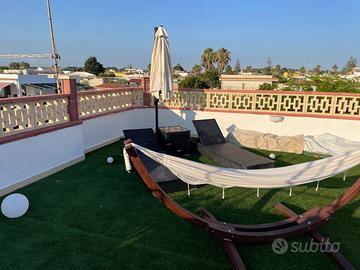 Solarium sulla terrazza e ampia zona esterna con barbecue