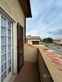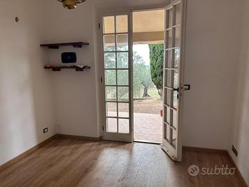 Casale Marittimo Questa villa, indipendente, disposta su quattro livelli con vista mare e con giardino privato si trova in una tranquilla zona residenziale a pochi passi dal suggestivo borgo di Casale Marittimo e a circa 10 km dalle spiagge di Marina di Bibbona. L'accesso, attraverso una scalinata esterna che conduce ad un porticato di 14,70 mq porta all'ingresso dell'abitazione dove veniamo accolti da ampia e luminosa zona giorno con camino e cucinotto. Entrambi gli ambienti hanno uscita su terrazzino con vista panoramica, mentre attraverso il disimpegno arriviamo ad un ampio e luminoso studio con accesso sul porticato, camera matrimoniale e bagno recentemente ristrutturato con doccia e piccolo ripostiglio. Una scala interna porta al primo piano dove troviamo altre tre camere da letto, una della quali con balcone con vista mare e ampio e luminoso bagno con vasca. La scala a chiocciola conduce alla mansarda composta da due ambienti utilizzabili (es. camera da letto o sala Hobby) e due ripostigli. Il piano seminterrato ha un doppio collegamento (sia interno che esterno) ed è composto da grande garage (mq 44,97), locale caldaia, scannafosso e taverna con cucina, bagno e servizio da ristrutturare. Il tetto è stato ristrutturato nel 2005. L'abitazione è dotata di riscaldamento autonomo a metano e impianto di climatizzazione. Questa villa è la soluzione ideale per chi cerca una casa spaziosa e in una posizione tranquilla e ben servita.