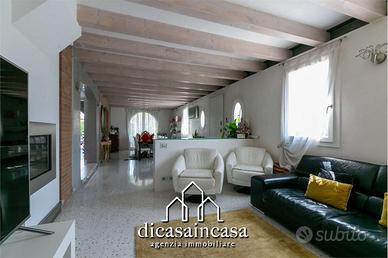 PER ULTERIORI INFORMAZIONI CONTATTARE FILIALE FAVARO VENETO: 041.24.33.501. FAVARO VENETO, A 500 METRI DA PIAZZA PASTRELLO. PORZIONE DI BIFAMILIARE DALLE INTROVABILI DIMENSIONI E CON FINITURE DI PREGIO. Ristrutturata completamente nel 2007, si sviluppa su due livelli. Al piano terra grande salone con zona salotto e zona pranzo ben divise, cucina abitabile a vista con uscita su meravigliosa veranda, disimpegno con scala arredo, bagno al piano terra. Al piano primo tre suite matrimoniali ognuna con bagno padronale al suo interno. Finiture di lusso, travatura in legno su entrambi i piani. pavimento in terrazzo veneziano nella zona giorno, parquet nella zona notte. Scala in pietra con solaio in vetro e acciaio. Riscaldamento a pavimento. Accessoriata di allarme e video sorveglianza, aria condizionata, zanzariere, caminetto a gas nella zona giorno. Completa la proprietà lo scoperto privato su due lati. Soluzione introvabile per grandezza e grado di finitura, in impeccabile stato di manutenzione.