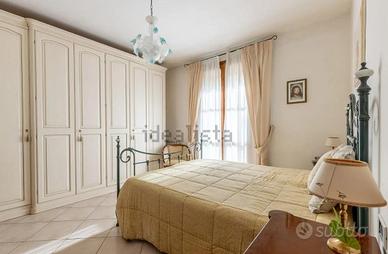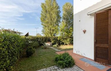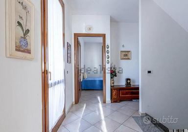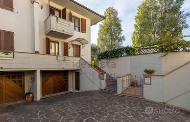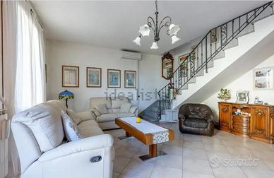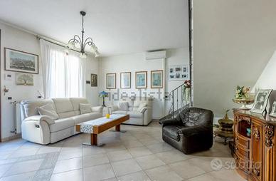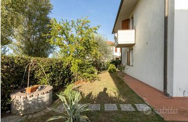 Molino D'egola - San Miniato - Villetta a schiera angolare con ingresso indipendente e giardino; disposto su tre livelli: al piano interrato abbiamo il grande garage di oltre 60 mq. collegato direttamente al piano superiore con una scala a chiocciola di servizio; al piano terra, a cui si accede mediante una scala esterna, abbiamo la zona giorno con ampio soggiorno, cucina abitabile e bagno di servizio, tutto il piano è circondato da un balcone; al piano superiore abbiamo la zona notte con una camera matrimoniale, due camerette ed il bagno, anche qui troviamo tre balconi. Completa la proprietà un bel giardino che circonda l'immobile su tre lati. - Rif. 2021