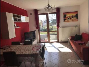 Villetta schiera completa di tutto , cucina , tavolo , soggiorno Tv ecc , camera completa di tutto , cameretta completa di tutto , tavernetta completa di tutto . Garage con portone automatico, giardino ecc .