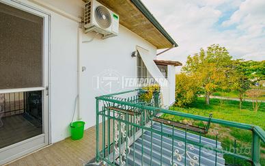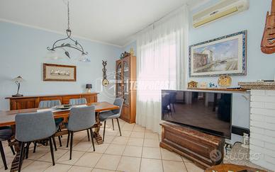 L'ingresso si apre attraverso una deliziosa veranda che introduce in un ambiente curato e luminoso. Varcata la soglia, ci accoglie la cucina abitabile, ideale per la vita quotidiana e i momenti conviviali. Proseguendo, si entra nel soggiorno, un ambiente caldo e raccolto, impreziosito da un camino a pellet che rende l'atmosfera particolarmente intima durante i mesi invernali.