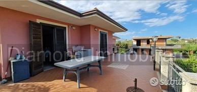 La Diamond Immobiliare propone in vendita a Fondachello di Mascali una villetta semindipendente ( poich libera su tre lati ) di ca 150 mq distribuita su due livelli con 250 mq ca di giardino curato ed una terrazza al livello del piano prima di ca 90 mq ; l'immobile si trova in buone condizioni , inserita in un contesto abitativa di solo due unità immobiliari e collocata a pochi passi dal lungomare di fondachello .