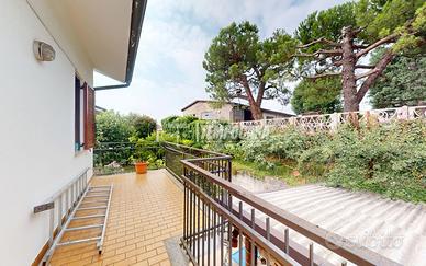 In zona residenziale tranquilla e riservata, proponiamo in vendita villetta libera su tre lati e confinante solo a nord con un'altra unità. L'immobile, edificato nel 1989, si sviluppa su due livelli principali oltre a un'ampia taverna, e offre spazi generosi, ben distribuiti e ideali per accogliere una famiglia alla ricerca di comfort, privacy e qualità abitativa. L'ingresso si raggiunge tramite una scala esterna che conduce al primo piano, dove si viene accolti da una porta blindata che apre su un luminoso e spazioso soggiorno, perfetto per momenti di relax e convivialità. La cucina è abitabile e affaccia direttamente sull'ampio giardino privato, vero punto di forza della proprietà: un'oasi di tranquillità, estremamente riservata, ideale per organizzare cene all'aperto con amici e familiari, per installare una piscina o per dedicarsi alla cura del verde. Sullo stesso livello si trova anche il primo bagno finestrato. Una scala lineare interna conduce al piano superiore, dove si sviluppa la zona notte composta da tre camere da letto: una matrimoniale molto ampia, luminosa e ben esposta, e due camerette, ideali per bambini, ospiti o come studi. Completa il piano un secondo bagno con finestra. Dal soggiorno si accede direttamente alla taverna, un ambiente completamente vivibile che può essere utilizzato come un secondo appartamento o spazio multifunzionale. Qui troviamo una comoda lavanderia, un terzo bagno, un'ulteriore stanza versatile (perfetta come studio, camera per gli ospiti o palestra) e una cantina. Infissi in legno con doppio vetro garantiscono un ottimo isolamento termico e acustico, mentre l'impianto di climatizzazione assicura comfort in ogni stagione. Incluso nel prezzo un ampio box auto. La strada antistante è di proprietà dei residenti e consente il comodo parcheggio di fino a due ulteriori veicoli oltre - Classe: E