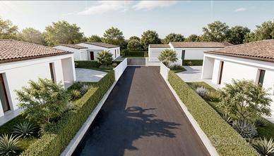 Vendesi 4 villette singole completamente indipendenti, una già impegnata, su lotti spaziosi, 120mq + garage doppio, tetto in pendenza, ampie vetrate , 2/3 camere, open space 2 bagni, tutte su un piano, spazioso giardino. Possibilità di vendita sia finita chiavi in mano che al grezzo.