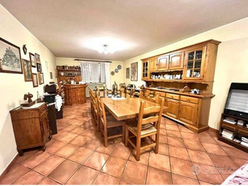 Villetta con giardino nei 3 lati, garage, taverna sviluppata in 2 piani, 3 camere da letto, 2 bagni, 2 cucine, salotto, studio più ricovero legna/attrezzi ad 1 km dal centro.