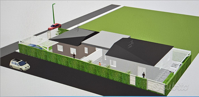 In zona Eurospin, villetta singola, unico piano terra composto da cucina soggiorno, tre camere, ripostiglio due bagni, giardino e posti auto. Climatizzata, fotovoltaico e solare termico. Il tutto Classe A. Possibilità di personalizzazioni.