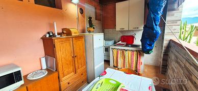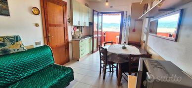 L'ingresso si apre su una deliziosa terrazza panoramica, perfetta per colazioni all'aperto o aperitivi al tramonto. Da qui, un'ampia portafinestra conduce al soggiorno con angolo cottura, ambiente accogliente e ben organizzato. Un disimpegno finestrato accompagna alla zona servizi dove troviamo un bagno completo finestrato con angolo lavanderia.
