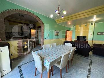 Ampia corte in comune adibita ad area parcheggio con giardino in tutta la proprietà, un'ampia veranda esterna ad uso esclusivo, una cucina abitabile, corridoio, n. 2 bagni, tre camere da letto matrimoniali, un ampio soggiorno ed un'altra camera adibita a studio.