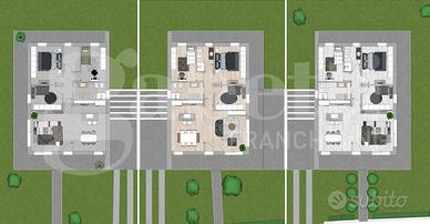 BRUGINE, a due passi dal centro, in zona tranquilla e comoda ai servizi essenziali, proponiamo in vendita una nuova porzione di trifamiliare di design contemporaneo. Questa soluzione è ideale per chi cerca l'eccellenza in termini di comfort e risparmio. La casa si sviluppa interamente al piano terra, garantendo massima comodità ed accessibilità per tutte le età; costruita con le più recenti tecnologie, garantisce un isolamento termico ed acustico ai massimi livelli, raggiungendo la classe energetica A4, il che significa massimo risparmio in bolletta. Presenta una distribuzione funzionale con ampio soggiorno open-space, tre camere da letto, due bagni finestrati, garage ed adiacente portico/posto auto; giardino privato in una zona circondata da aree verdi.