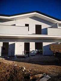 Splendida opportunità di acquisto, Villetta Centrale in schiera di tre. Proponiamo in esclusiva la vendita di una soluzione su due livelli di nuova costruzione. L'immobile si trova nel comune di Cervaro, in zona collinare, residenziale e ben esposta, ed è composto da ingresso in soggiorno living con cucina a vista, bagno e ripostiglio al piano terra, tre camere, bagno e balcone al piano primo. La soluzione dispone di ampia zona antistante pavimentata di circa 80 mq per accesso pedonale e carrabile oltre giardino retrostante esclusivo di circa 50 mq. Utilizzo di materiali a basso impatto ambientale di origine naturale e/o di facile riciclabilità. Elevata coibentazione termica dell'involucro. Elevato comfort abitativo, con l'adozione di sistema radiante a pavimento. Tetto ventilato con pannello termico. Impianto fotovoltaico 3kw. CLASSE ENERGETICA A. Possibilità di personalizzazione.