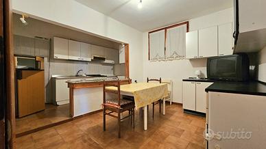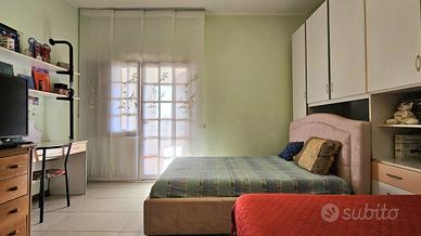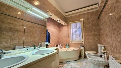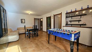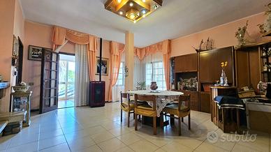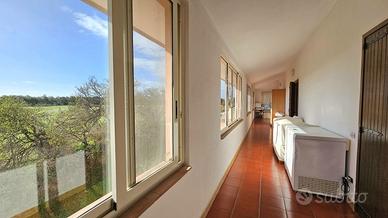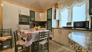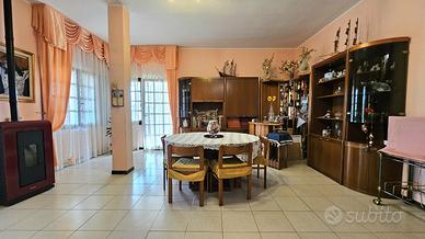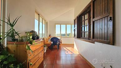 L'appartamento principale si trova al piano rialzato: un ampio quadrivano con giardino di circa 300 mq che abbraccia la casa su tre lati e una veranda spaziosa che invita a godere della quiete e della luce di ogni stagione. L'ingresso si apre su un soggiorno accogliente, impreziosito da un camino e da una stufa a pellet, un cuore caldo e conviviale che rende subito l'atmosfera familiare. Da qui si accede alla cucina abitabile, separata e luminosa, ideale per chi ama cucinare e ricevere. La zona notte ospita due camere matrimoniali e una singola, servite da due bagni -- uno con vasca e uno con doccia -- entrambi ampi e confortevoli. Una scala interna conduce alla grande terrazza sovrastante, un vero e proprio spazio da vivere, aperto sul paesaggio e perfetto per momenti di relax o convivialità. L'intero appartamento è inoltre servito da un moderno impianto di climatizzazione canalizzata caldo/freddo con pompa d'aria, che assicura comfort in ogni stagione e un'elevata efficienza energetica.