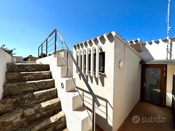 VILLASIMIUS - A soli 250 metri dalla splendida baia di 'Campulongu', in contesto condominiale immerso nel verde curato e dotato di piscina, villetta a schiera con ampio giardino privato e vista mare.
