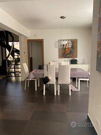 Vendo villetta unifamiliare, di recente costruzione , su 2 livelli più giardino e cantina di pertinenza composta al piano terra da ampia zona giorno con cucina, sala da pranzo, salone e studio in un unico ambiente ben diviso, più servizio e lavanderia, al centro dell'ampio solane una scala in legno vi porta al piano superiore dove si trova camera da letto con bagno in camera, cameretta , camina armadio e stireria, bagno di rappresentanza con affaccio nei balconi di pertinenza per ogni camera più ampia veranda e hall che fa da disimpegno a tutte le camere. Completa di termosifoni e camera condizionatori. Recentemente è stata rifatta anche la facciata. Per ulteriori foto in quanto mancano anche degli ambienti a causa del ridotto numero di foto che si possono inserire info in privato