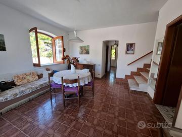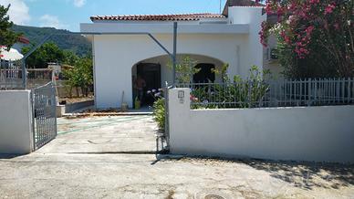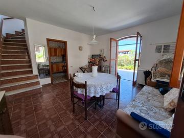 La villetta si trova a 400 m dal mare ed ha ingresso indipendente da viale privato senza condominio, nel quale è possibile parcheggiare due auto. Il viale è adiacente alla farmacia e frontalmente al Castello del principe in zona centrale abitata anche d'inverno ma a vocazione turistico-ricettiva con circolazione locale al di sotto della Statale Tirrena Inferiore. Dotata di un ampio giardino di circa 300mq che la circonda su 3 lati, ha un porticato con patio (ca 30mq) e una zona pavimentata (ca 50mq) per poter parcheggiare altre due auto. Grazie al particolare orientamento e alla conformazione, la villetta è al tempo stesso fresca e luminosa. Si sviluppa su 2 piani e al p.t., su ca 75mq ci sono un cucinotto abitabile, un salone, due camere da letto e un bagno mentre al piano superiore mansardato di ca 90 mq, trovano posto due ampi locali, un terrazzino un piccolo ripostiglio e un bagno. Sono attualmente in fase di ultimazione lavori di manutenzione ordinaria. La superficie commerciale ragguagliata è di ca. 210mq. A soli 50m vi è un albergo con ottimo ristorante e piscina.