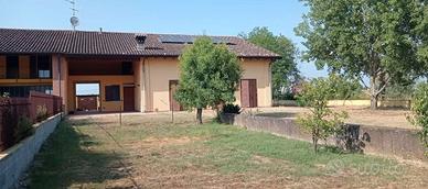 Splendida villa di testa in cascina, ricostruita integralmente nell' anno 2003 , cucina abitabile con affaccio da porta finestra sul giardino, confortevoli porte scorrevoli separano l'ampia sala/soggiorno con caminetto, esclusiva apertura soppalcata con gradevole vista delle travi in legno dell'abitazione, al piano zona notte con 2 ampie camere, camera matrimoniale con balcone, bagno doccia e vasca, Portico con posto auto doppio, lavanderia esterna con doccia e bagno più zona caldaia. Ampio giardino su 3 lati da 1000 mq. Impianto fotovoltaico da 3kw, pozzo privato, serbatoio GPL.