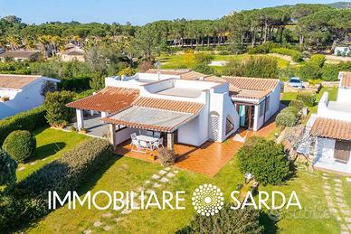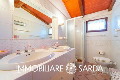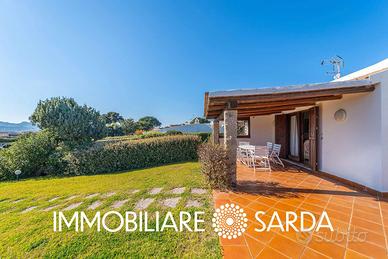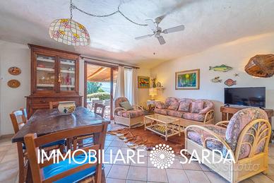 In posizione riservata e panoramica, proponiamo in vendita un'interessante villetta capo schiera libera su tre lati, con piacevole vista mare e situata a soli 100 metri dalla spiaggia, comodamente raggiungibile a piedi, in uno dei contesti più apprezzati di Baia Sardinia. La proprietà è inserita in un elegante complesso residenziale composto da poche ville, immerso in un ampio giardino condominiale con grande piscina, campi da tennis e aree dedicate al tempo libero, ideale per chi desidera vivere la vacanza o la quotidianità in un ambiente curato, tranquillo e prestigioso. La villetta si sviluppa su più livelli. Al piano terra si apre un ampio giardino privato, completamente recintato con caratteristici muretti a secco e siepi, dotato di doppio ingresso: uno dal cancello principale, con accesso ai due posti auto privati, e uno con collegamento diretto alla piscina e ai campi da tennis condominiali. L'ingresso alla proprietà avviene attraverso una comoda veranda coperta, perfetta per piacevoli momenti di relax all'aperto, dalla quale si accede alla zona living con soggiorno, cucina a vista e zona pranzo. Una seconda veranda coperta conduce alla zona notte composta da due camere da letto servite da un comodo bagno. Al piano inferiore interrato troviamo un'ampia stanza attualmente utilizzata come camera da letto e un secondo bagno. Il vero punto di forza della proprietà è il grande solarium al piano superiore: uno spazio suggestivo da vivere come salotto esterno, ideale per aperitivi e cene all'aperto con vista mare e splendidi tramonti sul Golfo di Arzachena. Sul retro della casa è inoltre presente un pratico vano coperto adibito a lavanderia e ripostiglio. La posizione è particolarmente apprezzata non solo per la tranquillità e la panoramicità, ma anche per la sua straordinaria comodità per chi ama vivere il mare in libertà: la vicinanza alla spiaggia, raggiungibile facilmente a piedi, e al porto di Cala Bitta rappresenta un grande valore aggiunto pe