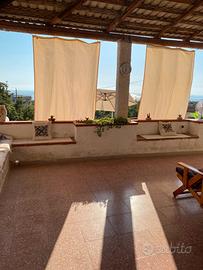Villetta vista mare strutturata su due livelli: piano superiore con soggiorno, cucinotta, bagno e due camere da letto per un totale di 3 posti letto (più due aggiuntivi nel soggiorno). Ampia terrazza di 100 mq più patio coperto e giardino. Al piano inferiore ampia lavanderia e bagno con servizi e doccia. Posto auto riservato e numerato.