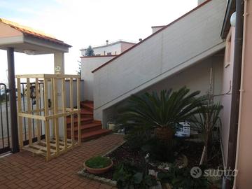 Esposta su due lati (est-ovest) la villetta si presenta molto luminosa e panoramica con vista fino al mare ed ai monti circostanti. Dotato di riscaldamento autonomo e indipendente per ogni piano, l'immobile può essere suddiviso in due abitazioni ognuna con ingresso indipendente.