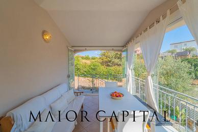 Limmobile si sviluppa al primo piano ed è accessibile tramite una scala esterna che conduce a unampia veranda coperta, chiusa da vetrate scorrevoli. Questo spazio, utilizzabile tutto lanno, diventa un naturale prolungamento della zona giorno. Allinterno si trova unaccogliente area living con cucina a vista, concepita come un unico ambiente luminoso e funzionale, perfetto sia come soggiorno che come sala da pranzo. La zona notte ospita due camere matrimoniali spaziose e adattabili, in grado di accogliere fino a quattro persone e facilmente trasformabili in camere doppie o con letti a castello. A completare il piano, un bagno finestrato dotato di doccia.