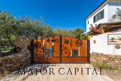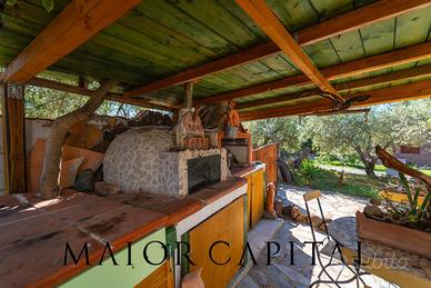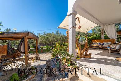 La proprietà gode di totale indipendenza e di unatmosfera riservata, perfetta per vivere la Sardegna in pieno relax. Lingresso, impreziosito da un cancello in legno artigianale, si apre su un ampio giardino rigoglioso che circonda la casa su tre lati, offrendo uno spazio verde ideale per chi ama la vita allaperto.