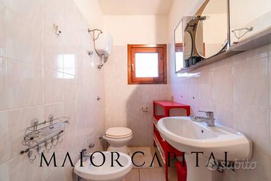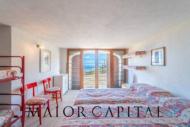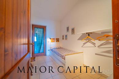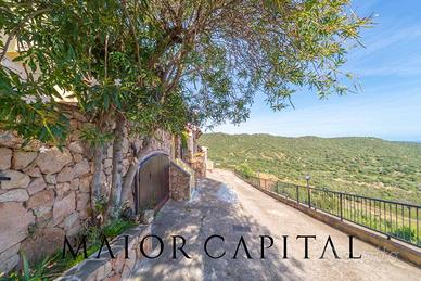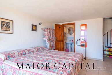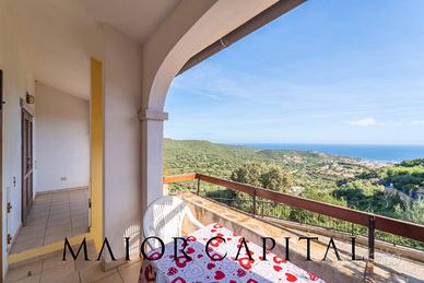 Disposto su tre livelli, il villino accoglie al piano rialzato una luminosa zona giorno con cucina a vista, arricchita da un camino in pietra locale perfetto per le serate invernali, e con accesso diretto a una veranda coperta con vista panoramica sul mare. Al piano superiore, la zona notte dispone di una camera matrimoniale e una camera singola. Al piano superiore si trovano la camera matrimoniale, una camera singola e il bagno. Una scala a chiocciola interna collega al piano seminterrato, dove è presente un ambiente ampio e luminoso con bagno, ideale come spazio aggiuntivo. Completa la proprietà una piccola corte sul retro.