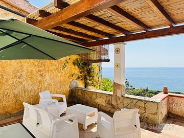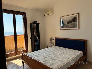 La terrazza vista mare invita a rilassarsi e godere di panorami mozzafiato, mentre il giardino con barbecue è perfetto per le cene estive all'aperto. Non mancano ripostigli per tenere tutto in ordine e un posto auto privato di pertinenza esclusiva per la tua comodità. Le zanzariere ti garantiranno freschezza senza fastidi, rendendo questa villetta un rifugio ideale. Non perdere l'opportunità di vivere a pochi passi dal mare!