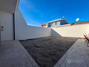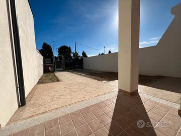 Veranda con loggiato in ingresso, più posti auto, percorso pedonale e marciapiedi rifinite con ottime piastrelle antiscivolo per esterno.