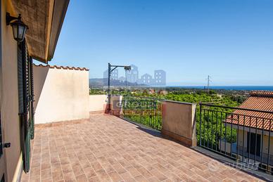 Al piano mansardato abbiamo la quarta camera da letto, bagno, ripostiglio, zona living e un ampio terrazzo vista mare, Taormina e nelle belle giornate limpide si scorgono le coste della Calabria.