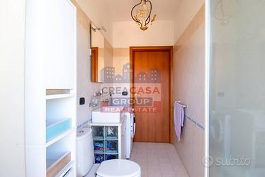 Inoltre, la proprietà dispone di un box auto quadruplo rifinito ed abitabile nelle condizioni attuali, con un bagno completo e la predisposizione per una cucina, il che lo renderebbe ideale per la realizzazione di un appartamentino indipendente da mettere a reddito o per gli ospiti. Nella corte esterna dirimpetto al garage possibilità di tre posti auto scoperti per accogliere comodamente più veicoli.
