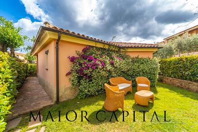 Disposta su un unico livello, la proprietà offre un giardino privato e una veranda vivibile, perfetti per creare un angolo esterno riservato. Qui si può allestire una zona pranzo per le serate estive con barbecue o unarea prendisole dove rilassarsi sotto il sole della splendida Murta Maria.