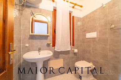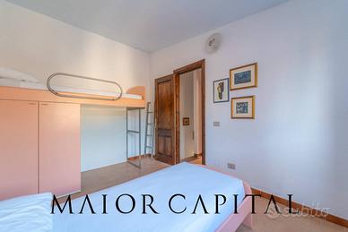Il piano superiore, dedicato alla zona notte, ospita una camera matrimoniale luminosa, una seconda camera doppia attualmente arredata con letto a castello ma facilmente trasformabile in matrimoniale e un secondo bagno completo, a servizio delle camere.