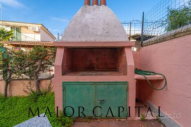 All'esterno, l'accesso pedonale conduce a un ampio giardino con zona pranzo allaperto, camino per le grigliate estive e aree dedicate al relax. Lingresso carrabile garantisce un comodo posto auto interno, un valore aggiunto per chi desidera comfort e sicurezza.