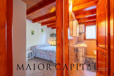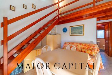 Gli ambienti interni, organizzati secondo la tipica configurazione di un bilocale, sono ben studiati per garantire comfort e praticità. Lingresso si apre su un luminoso living con cucina a vista, uno spazio accogliente e ideale per la vita quotidiana. Un pratico disimpegno introduce alla zona notte, composta da una camera da letto matrimoniale con accesso diretto al giardino sul retro tramite porta finestra. In questa area esterna è presente anche una comoda doccia esterna, particolarmente funzionale durante la stagione estiva. Completa il piano un bagno finestrato, dotato di doccia.