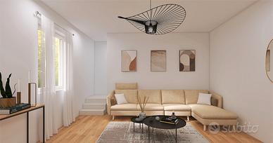L'unità "A" è composta da soggiorno con cucina a vista al piano terra e tre camere, disimpegno e bagno al piano primo, oltra ad un'unità ad uso ufficio con servizio igienico al piano terra.