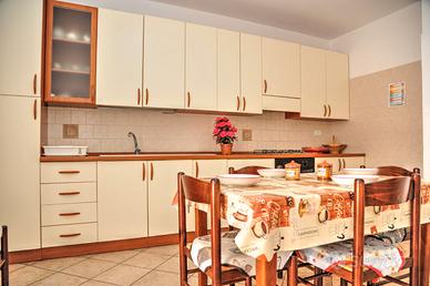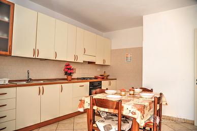 Gli interni sono organizzati in modo funzionale: la zona pranzo, fulcro della casa, collega armoniosamente tutti gli ambienti. La cucina, completa e attrezzata, si apre sul cortile posteriore, accessibile anche da una delle camere da letto. La zona notte comprende due camere e due bagni, di cui uno di servizio, per garantire praticità e comfort.