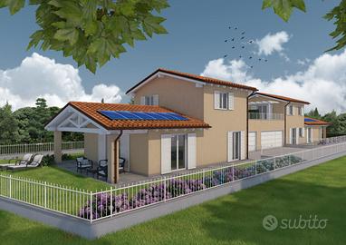 Cucina & Salotto - N°2 camere da letto - N°1 bagno - Locale tecnico / cantina - Doppia autorimessa - Porticato esterno - Giardino privato sui tre lati con ampi spazi verdi