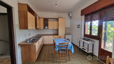 Al piano primo troviamo doppio salone con caminetto, cucina abitabile, tre camere da letto e un bagno ,corridoio, balconi.