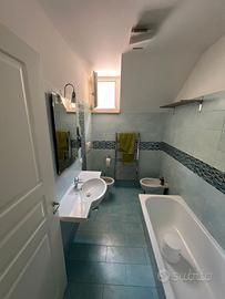 Primo piano: locale mansardato con mobili a muro dotata di ampie finestre che danno su altro balcone, ed un bagno finestrato.