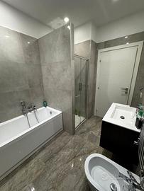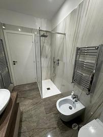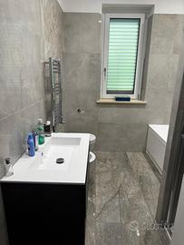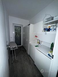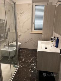 La soluzione è fornita sia di porte battenti sia a scomparsa, impianto di riscaldamento a pavimento, piano cottura a induzione, infissi con doppio vetro in alluminio, impianto di allarme interno ed esterno completo di fotocamere, climatizzatori e pavimento in grès porcellanato effetto marmo su tutta l'abitazione.