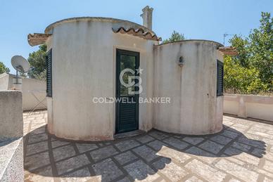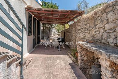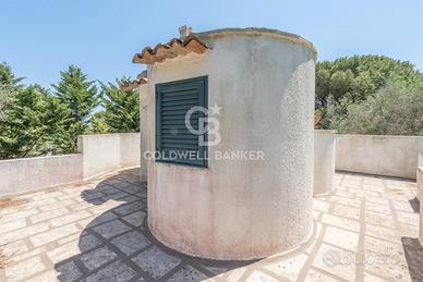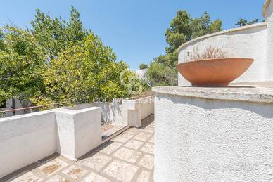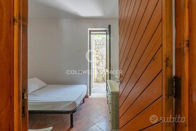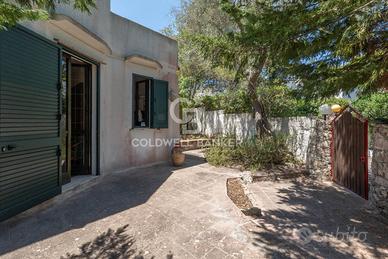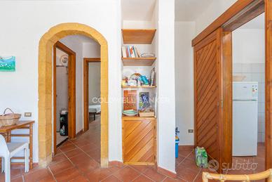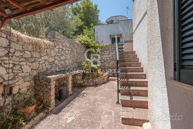 Una caratteristica distintiva della villetta è la scala esterna in pietra che conduce al piano primo, dove si trova una suggestiva camera da letto, con bagno privato, ed una terrazza a livello che offre una vista incantevole sul mare e sul promontorio di Castro.