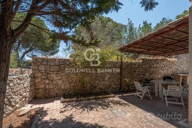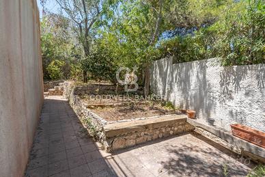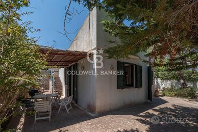 Il giardino, che circonda la casa, è stato attrezzato per godere del clima mediterraneo, e include una veranda dove poter pranzare o cenare al fresco, nelle calde serate estive.