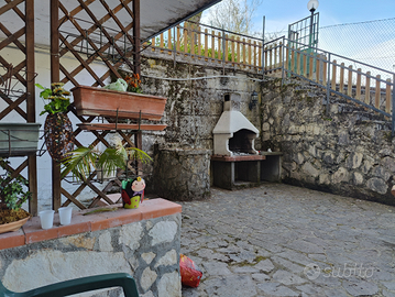 Vendo villino di 80 mq a Tagliacozzo dentro residence privato in un contesto tranquillo circondato dalla natura chiamato " la piccola Svizzera " così composto : Ampio salone con camino, 2 camere matrimoniali, ampio bagno con cabina doccia, cucinetta attrezzata in muratura, stanzino/sgabuzzino ed è circa data su due lati da ampio giardino e davanti all'entrata da un ampio patio con barbecue in muratura. Eseguiti circa 5 anni fa' i seguenti lavori : pavimenti con isolamento termico, bagno nuovo, parete esterna ed altro. Per info 3207034955 Gianluca.