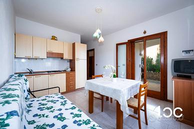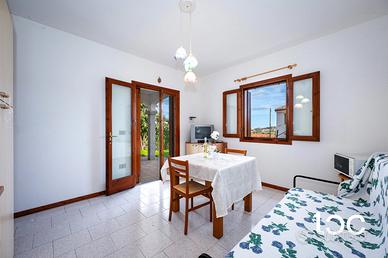 L'immobile è composto da un accogliente soggiorno con cucina a vista, una camera da letto e un bagno finestrato, spazi ben distribuiti e pensati per offrire comfort e funzionalità sia come casa vacanze sia come abitazione da vivere tutto l'anno. La luminosa veranda, insieme al giardino attrezzato con barbecue, rappresenta il luogo ideale per pranzi e cene all'aperto, momenti di relax e convivialità, godendo del clima mite e dell'atmosfera tipica della zona.