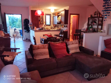 Ampia veranda d'ingresso, vano lavatrice / caldaia, soggiorno ampio con cucina a vista in legno su misura c/lavastoviglie, camino e wc di servizio con doccia.